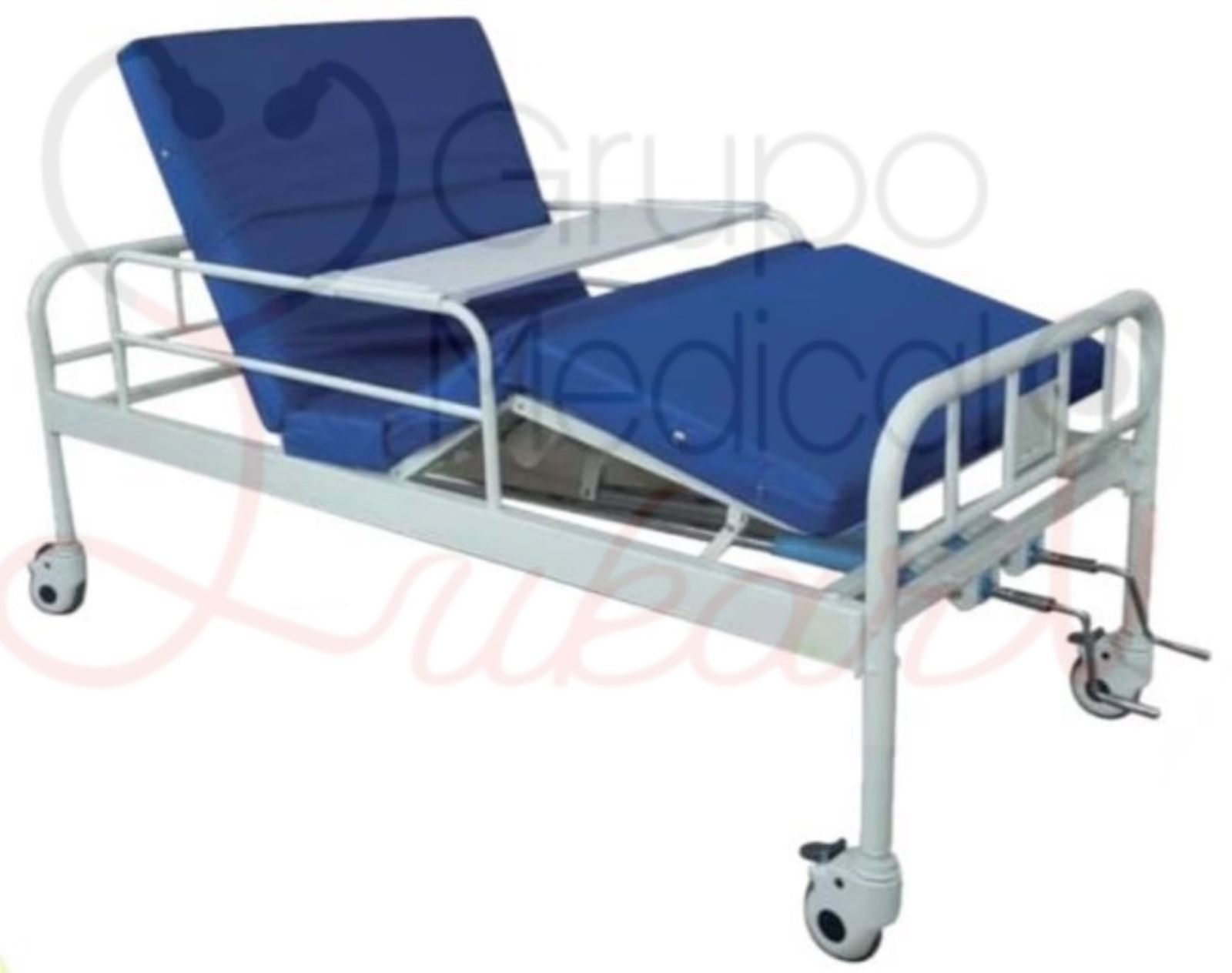 Cama hospitalaria de lujo con colchón, porta sueros y mesa para alimentos